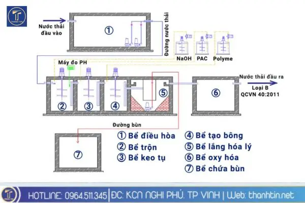 - Ưu điểm: Đảm bảo nước thải sau xử lý đạt QCVN 40:2011/BTNMT – Cột A, thích hợp với cơ sở giặt là quy mô lớn.