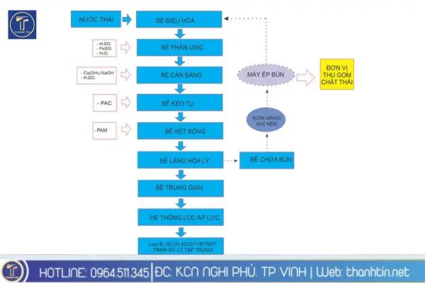 - Xử lý bùn: Bùn thải từ bể lắng được ép khô và thu gom theo quy định chất thải nguy hại.