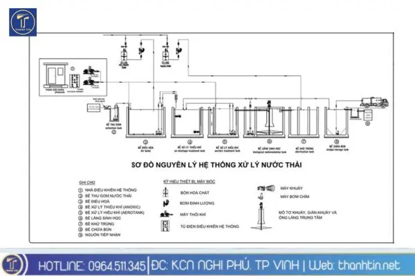 Hệ thống xử lý nước thải khu dân cư được thiết kế nhằm loại bỏ các tạp chất hữu cơ, chất rắn, dầu mỡ, vi khuẩn và các hợp chất dinh dưỡng (Nitơ, Photpho) có trong nước thải sinh hoạt. Toàn bộ quy trình được bố trí theo sơ đồ công nghệ khép kín, đảm bảo nước đầu ra đạt chuẩn môi trường theo QCVN 14:2008/BTNMT.